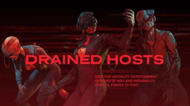 Drained Hosts are the sad end result of those who sign up to be used as human hosts for the Virtuality business, allowing their their minds to be used as sensory stimulus for those using the system of Virtuality. Drained hosts lack any sense of free will or carry anything of their former selves, more or less making them zombies. The Drained Hosts wander around the Imagination Farms deep below Rengkok City after the Angel machines spit them out deeming them useless they are either killed or kept as slaves and drones to the Sick Sisters.